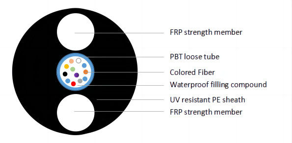 Deux FRP comme le porteur central appliqué au-dessus de l'enveloppe intérieure, le câble est accompli la gaine externe de PE.