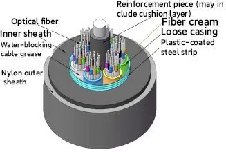 ② L'extérieur des pièces de renforcement et l'intérieur de l'âme du câble sont remplis d'une pâte de câble bloquant l'eau, assurant les effets d'étanchéité et d'étanchéité du câble optique.