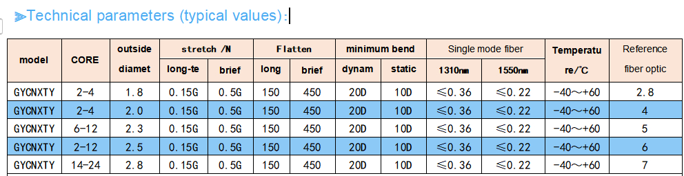 ¢ Norme de mise en œuvre: YD/T 1460.4-2019 Cables optiques miniatures soufflés par air et unités de fibres pour la communication: Cables optiques miniatures.