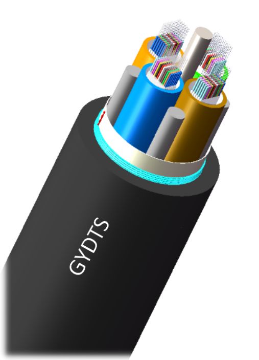 La structure du câble optique consiste à insérer une bande de fibres optiques monomode ou multimode dans un tube lâche en plastique à haut module rempli d'un composé imperméable.Le centre du noyau du câble est une pièce de renforcement métalliquePour certains câbles optiques avec un certain nombre de noyaux, une couche de plaquette en polyéthylène est extrudée à l'extérieur de la partie centrale de renforcement métallique.Les tubes en vrac (et les cordes de remplissage) sont tordus autour du membre central de renforcement pour former un noyau de câble compact et rondLes espaces creux à l'intérieur du noyau du câble sont remplis avec un composé étanche à l'eau, puis une gaine d'acier et de polyéthylène est extrudée pour former le câble.