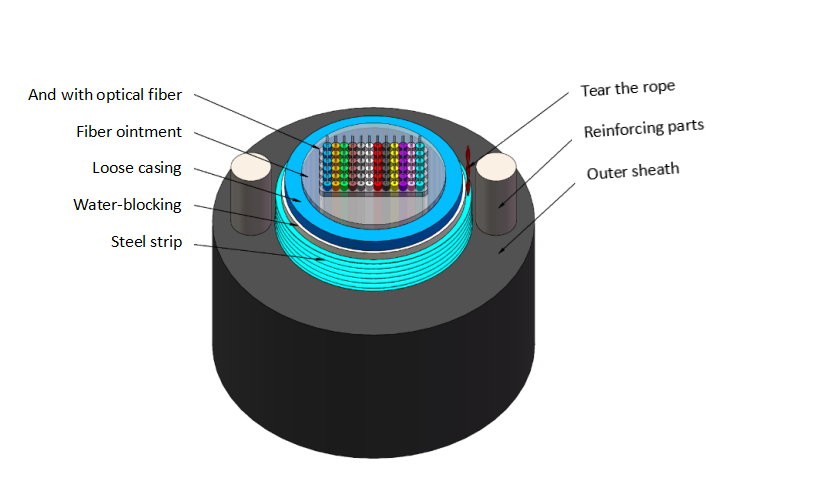 2 Le câble optique a une structure compacte: entre le ruban d'acier et le tube en vrac, des matériaux étanches sont ajoutés.qui assure non seulement l'effet hydrofuge et hydrofuge du câble optique, mais garantit également que le retour du tube en vrac est faible après la pose du câble optique.