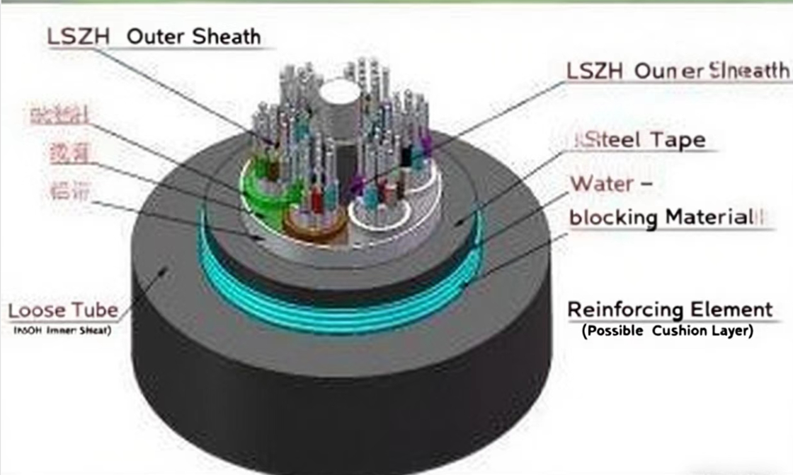 ⫸ Caractéristiques du produit : ① Conception raisonnable et contrôle précis de la longueur restante et de la méthode de câblage de la fibre optique dans le tube lâche, ce qui confère au câble optique d'excellentes performances mécaniques et environnementales ; ② La partie extérieure du renfort et la partie intérieure du cœur du câble sont remplies d'une pâte de câble résistante à l'eau, assurant l'effet d'étanchéité et de résistance à l'eau du câble optique ; ③ La structure à double couche de l'emballage longitudinal en ruban métallique et de la double couche de gaine assure une forte résistance à la traction et à la pression latérale, avec la capacité d'empêcher les dommages causés par les rongeurs et une bonne résistance à l'humidité ; ④ La gaine est fabriquée en matériau LSZH ignifuge, qui présente les avantages d'un bon effet ignifuge et d'une faible concentration de fumée pendant la combustion. Il peut être utilisé dans des endroits avec des exigences en matière de retardateur de flamme, en particulier dans les réseaux de communication de transport ferroviaire.